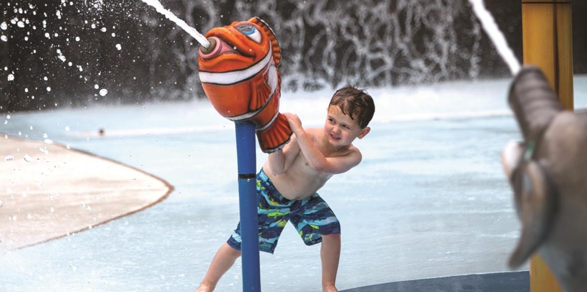 Safari Splash is a 14,000 square-foot water play area equipped with 4 slides, a water dump tower, a fill wall...